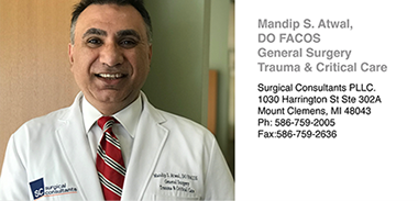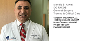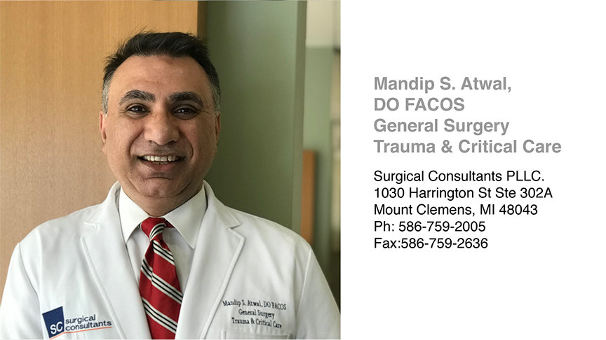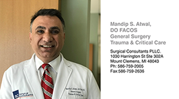 Committed to Excellence Our surgeons and staff at Surgical Consultants devote their time to assist the patients in their office located on the third floor of McLaren Macomb hospital. This group of skilled professionals work tirelessly each day to assist their patients in navigating through the intrusive process of surgery. They stop at nothing to administer the care and expertise that their patients have come to expect from one of the top surgery programs in Michigan. Dr. Carl Pesta and Dr. Mandip Atwal have been working together since 2003, providing bariatric, minimally invasive, general, and endocrine surgery.
